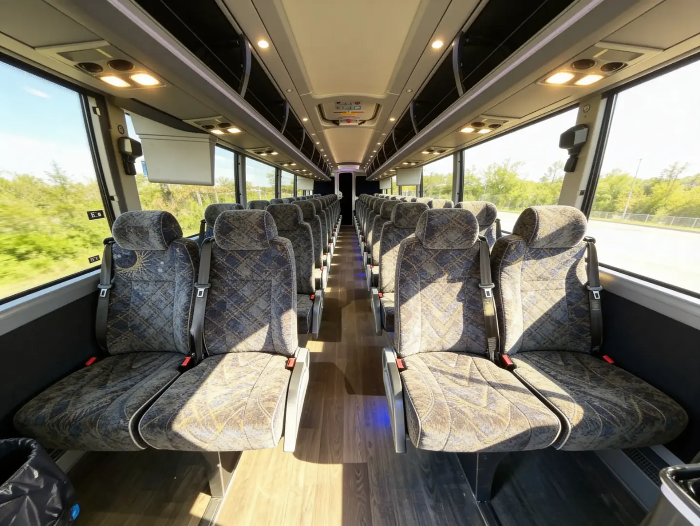 One of the best parts of renting a bus with us is you can choose the amenities that work best for your group. Let your group get the most out of every mile with premium amenities like WiFi, reclining seats, extra legroom, and panoramic windows perfect for snapping pictures of the Hudson Valley, catching up on work, or relaxing between stops. You can easily stay connected on the road with onboard WiFi, USB ports, and power outlets, while convenient overhead compartments and undercarriage storage bays keep personal items and luggage organized. You can opt for an ADA-accessible charter bus with features like wheelchair lifts, widened aisles, and additional handrailing at no extra cost to you. We also offer vehicles with all the entertainment and comfort features you need-like warm, welcoming lighting, top-of-the-line sound systems, flat-screen TVs, and fully stocked wet bars-perfect for unwinding on long rides or getting the party started.